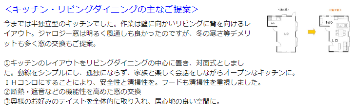奥様はリフォームに対し、色々と迷われ、ご不安な点もおありでした。実際の住んでいるスペースが、具体的にどういう風になるか というのはイメージが付きにくいもの。